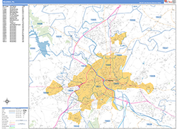 This Reading, Pennsylvania Digital Map includes:-5 Digit Zip Code boundaries and numbers