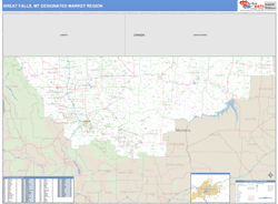 The Basic Style Great Falls Designated Market Region (DMR), MT Digital Map map is great for presentation, offering colored shading of major populated areas. It is an excellent choice for applications that benefit from a professional look and basic map reference information.
