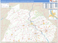 The Basic Style Harrisburg-Lancaster-Lebanon-York Designated Market Region (DMR), PA Digital Map map is great for presentation, offering colored shading of major populated areas. It is an excellent choice for applications that benefit from a professional look and basic map reference information.