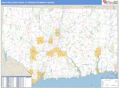 The Basic Style Hartford & New Haven Designated Market Region (DMR), CT Digital Map map is great for presentation, offering colored shading of major populated areas. It is an excellent choice for applications that benefit from a professional look and basic map reference information.