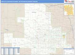 The Basic Style Lincoln & Hastings-Kearney Designated Market Region (DMR), NE Digital Map map is great for presentation, offering colored shading of major populated areas. It is an excellent choice for applications that benefit from a professional look and basic map reference information.