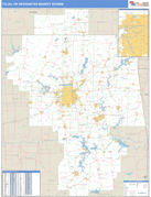 The Basic Style Tulsa Designated Market Region (DMR), OK Digital Map map is great for presentation, offering colored shading of major populated areas. It is an excellent choice for applications that benefit from a professional look and basic map reference information.