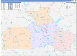 The Color Cast Style Alexandria Designated Market Region (DMR), LA Digital Map boasts a multi-colored display that shades each ZIP Code area with its own background color. It is an ideal choice for applications that benefit from quickly and easily distinguishing one ZIP Code from the others.