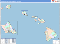 The Color Cast Style Honolulu Designated Market Region (DMR), HI Digital Map boasts a multi-colored display that shades each ZIP Code area with its own background color. It is an ideal choice for applications that benefit from quickly and easily distinguishing one ZIP Code from the others.