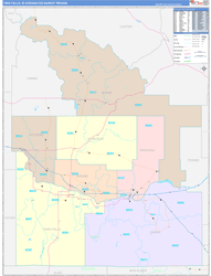 The Color Cast Style Twin Falls Designated Market Region (DMR), ID Digital Map boasts a multi-colored display that shades each ZIP Code area with its own background color. It is an ideal choice for applications that benefit from quickly and easily distinguishing one ZIP Code from the others.