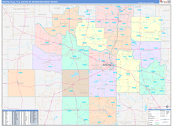 The Color Cast Style Wichita Falls & Lawton Designated Market Region (DMR), TX Digital Map boasts a multi-colored display that shades each ZIP Code area with its own background color. It is an ideal choice for applications that benefit from quickly and easily distinguishing one ZIP Code from the others.