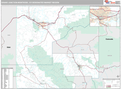 The Premium Style Grand Junction-Montrose Designated Market Region (DMR), CO Digital Map is a detailed map with colorful shadings of populated places. It is an ideal choice for applications that benefits from detailed reference information.