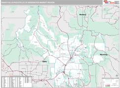 The Premium Style Idaho Falls-Pocatello Designated Market Region (DMR), ID Digital Map is a detailed map with colorful shadings of populated places. It is an ideal choice for applications that benefits from detailed reference information.