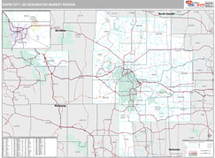 The Premium Style Rapid City Designated Market Region (DMR), SD Digital Map is a detailed map with colorful shadings of populated places. It is an ideal choice for applications that benefits from detailed reference information.