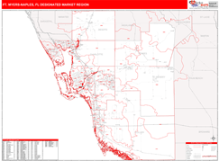 The simple display of the Red Line Style Ft. Myers-Naples Designated Market Region (DMR), FL Digital Map make it ideal for planning and reference. Easily plan out territories, locations and other information on this map.
