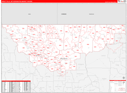 The simple display of the Red Line Style Great Falls Designated Market Region (DMR), MT Digital Map make it ideal for planning and reference. Easily plan out territories, locations and other information on this map.