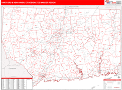 The simple display of the Red Line Style Hartford & New Haven Designated Market Region (DMR), CT Digital Map make it ideal for planning and reference. Easily plan out territories, locations and other information on this map.