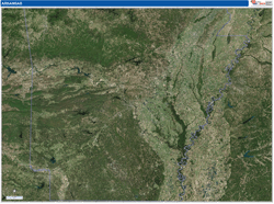 The Satellite Pure Style Arkansas , AR Digital Map gives you a bird’s eye view of your area without distractions. The display on this style is very clear with no overlaid map detail. It is an excellent map for drawing locations, territories and other information on your map.