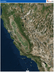 The Satellite Pure Style California , CA Digital Map gives you a bird’s eye view of your area without distractions. The display on this style is very clear with no overlaid map detail. It is an excellent map for drawing locations, territories and other information on your map.