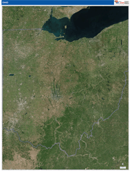 The Satellite Pure Style Ohio , OH Digital Map gives you a bird’s eye view of your area without distractions. The display on this style is very clear with no overlaid map detail. It is an excellent map for drawing locations, territories and other information on your map.